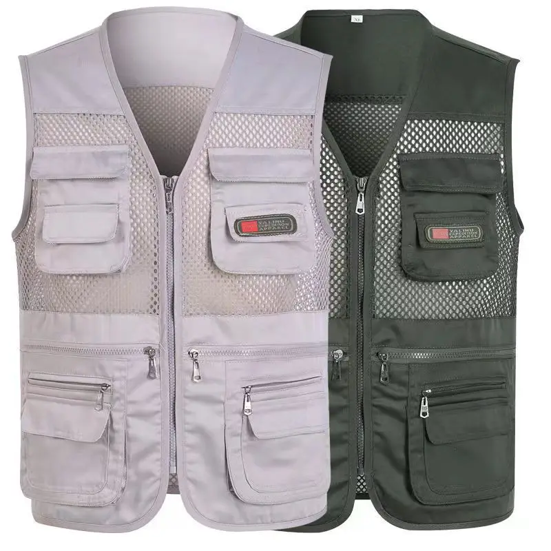 Muži rybaření tílko lehoučké pletivo outdoorové sportovní tílko pro léto kemping piknik rybaření na zip objímka vesta pro práce nést