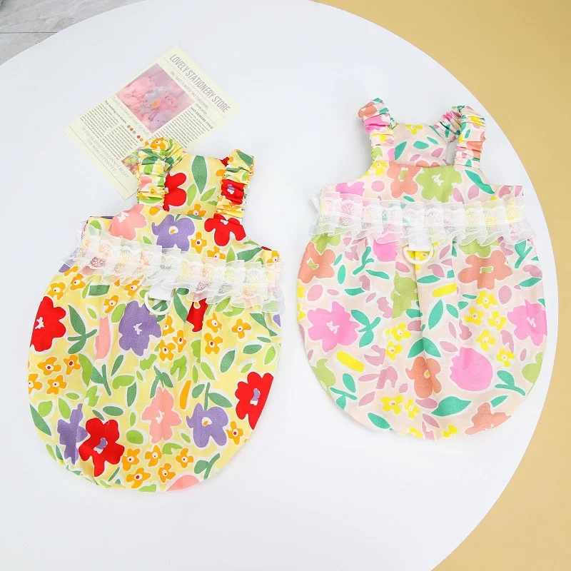 Léto oblečení pro psů luxusní pes květinová šaty zvířátko kšandy pes sukně štěně šaty kocour oblečení čivava bišonek apparels