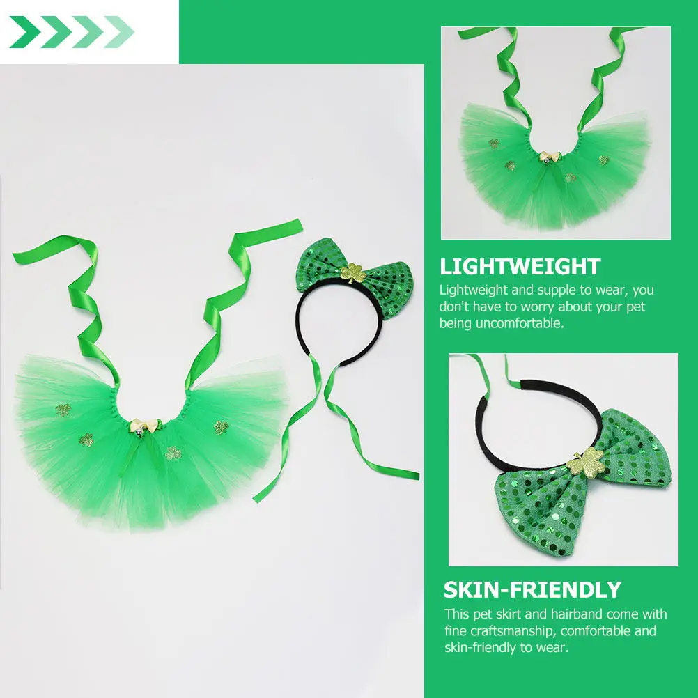 1set embellished patrick's den zvířátko sukně a gumička do vlasů sada pro psů slavnostní večírek šaty rekvizita fotka smyk příslušenství sloh slavnost dekorace