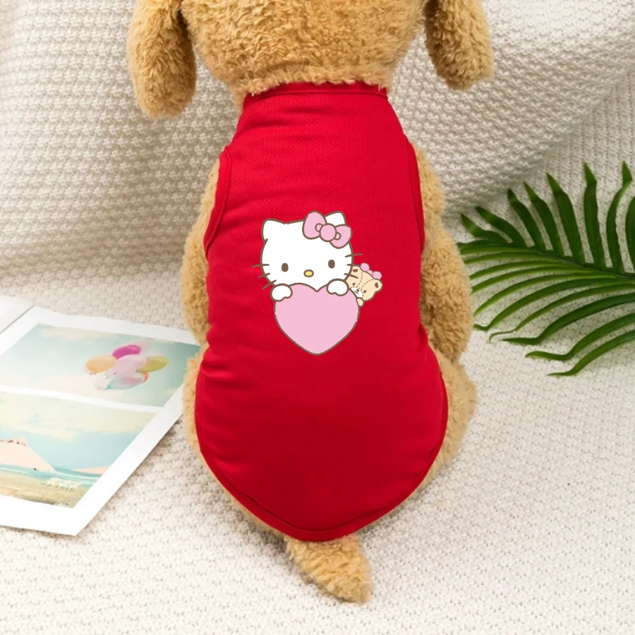 1ks růžová love&hello kočička potištěné zvířátko komora nejvyšší, jaro nový kocour a pes měkké prodyšné zvířátko tričko