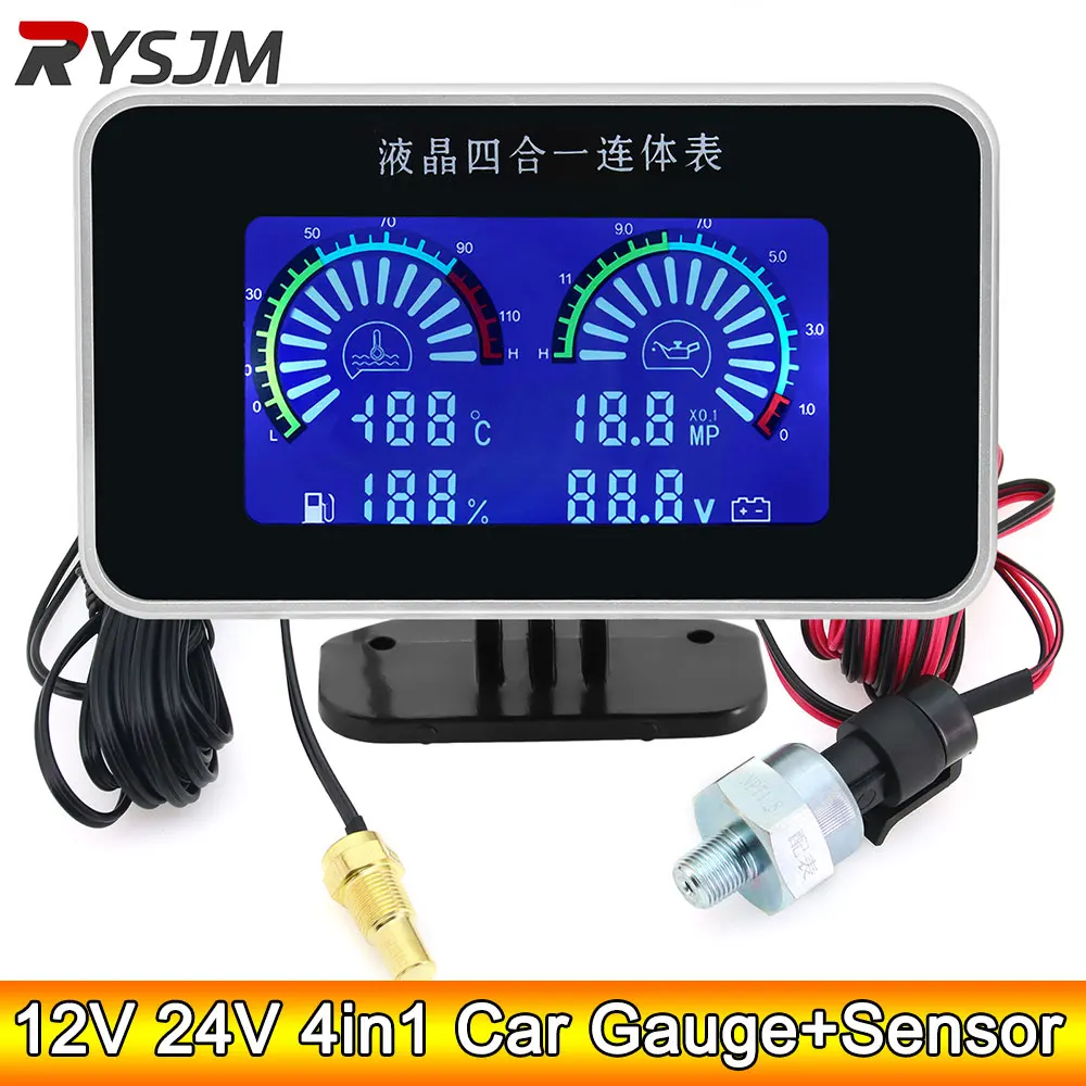 Inzerát 4v1 12V 24v voda teplota mazat měrný tlak měrka palivo přesný měrka voltové měřič voda temp senzor 10mm mazat tiskový senzor elektrické napětí