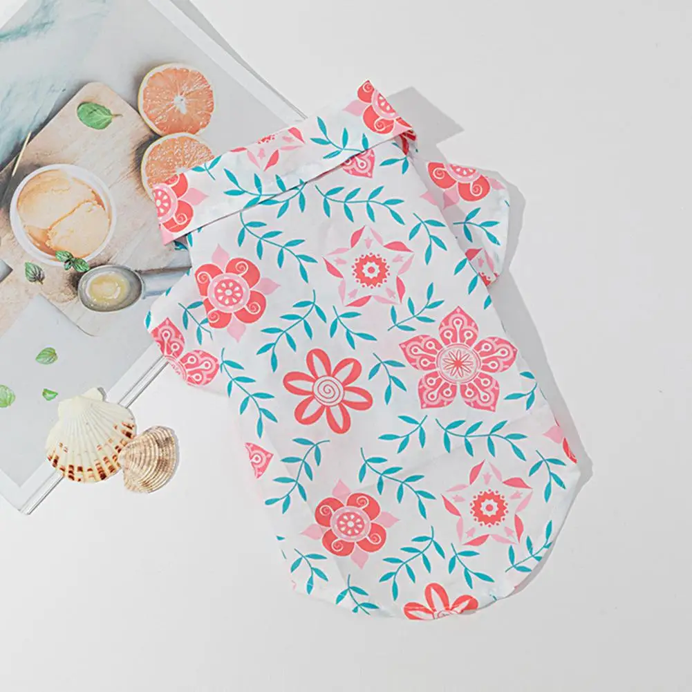 Léto zvířátko oblečení pro malý střední psů roztomilá printe pláž pes kocour košile teddy bišonek štěně tričko outdoorové hrací zvířátko kostým