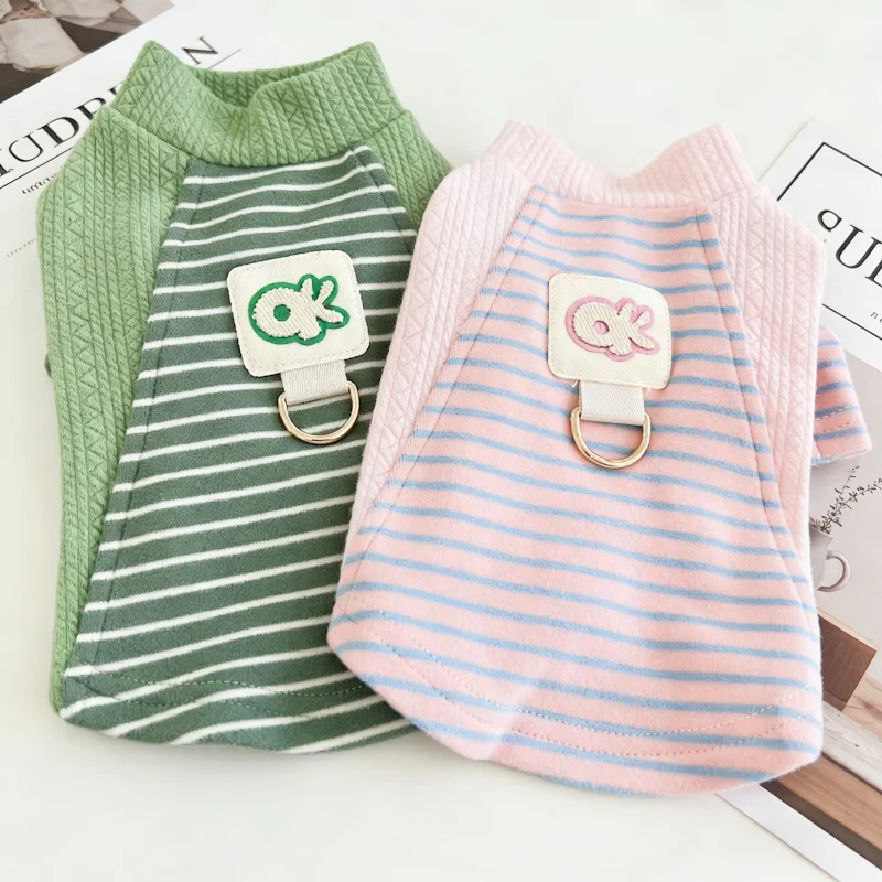 Luxusní pruhované pes košile s d-ring teplý měkké pes oblečení jaro štěně pulovry zvířátko tílko roztomilá kocour košile pes mikina zvířátko kostým