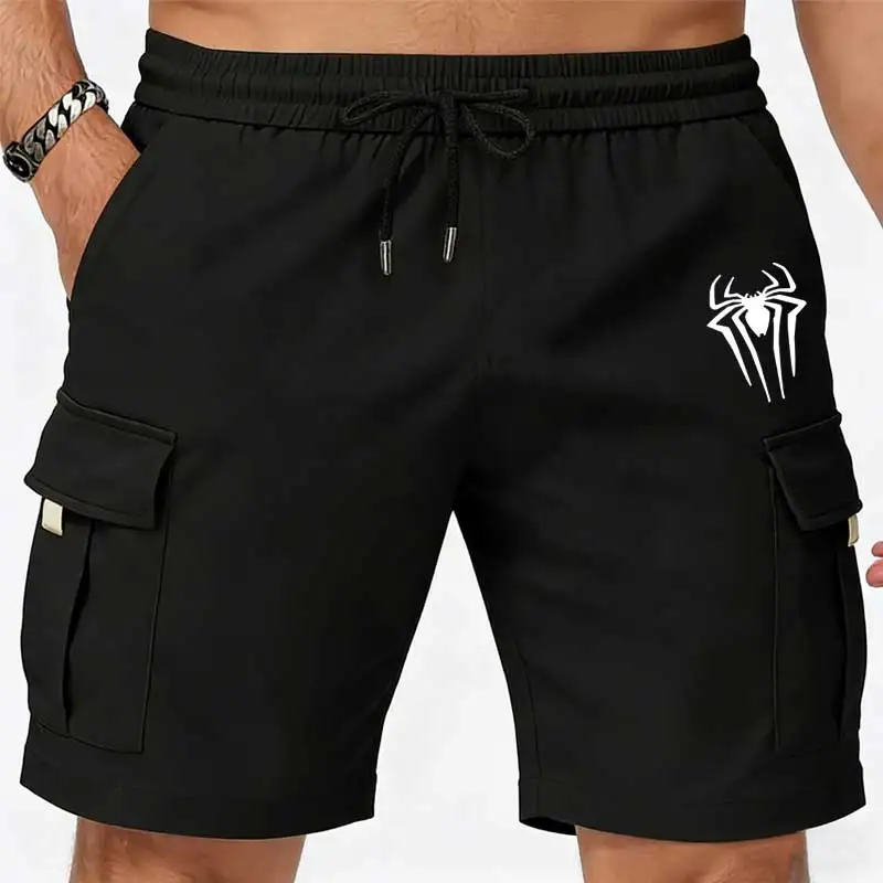 Nový pánské pavouci tisk náklad šortky pánský outdoorové kombinézy elastická pás cyklistika šortky multi-pockets práce pláž sportovní šortky