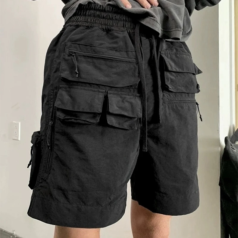 Pánské krátký ležérní workwear více kapes šortky, léto solid-color sportovní parkour elastická stahovací vhodné šortky