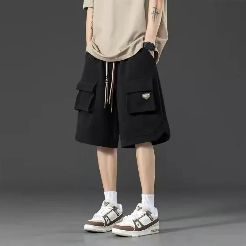 2025 pánské léto celistvý barva ležérní elastická pás náklad šortky volné více kapes móda cestovní sportovní šortky