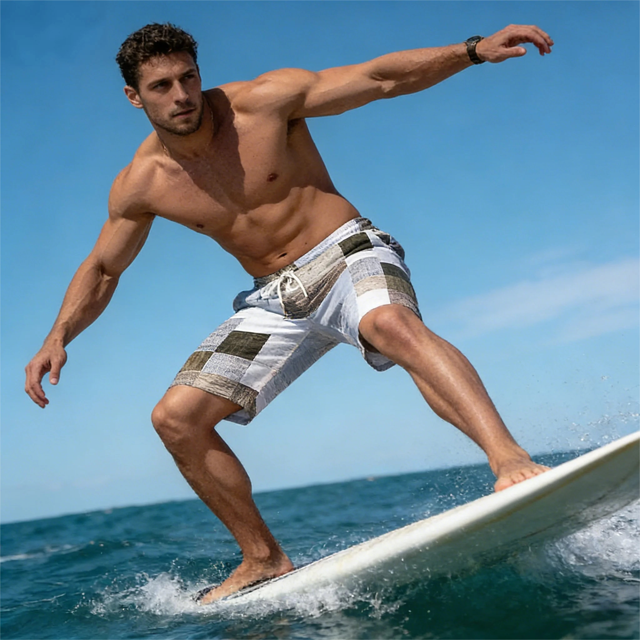 Vintage patchwork střih pláž krátký pro muži móda ležérní léto 3D falešná látka potištěné plavat pánské plavky volné ulice krátký kalhot