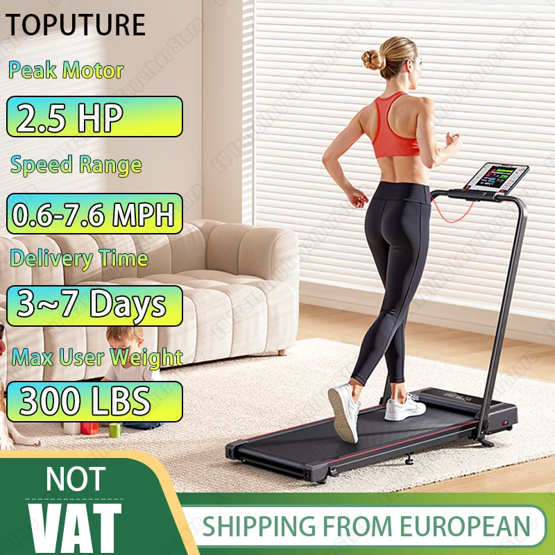 4-IN-1 plochý cestička treadmill 9% naklonění 2.5HP motorový 0.6-7.6 MPH rychlost dosah běžecký pás antikluzké otřes absorpce běžecký blok