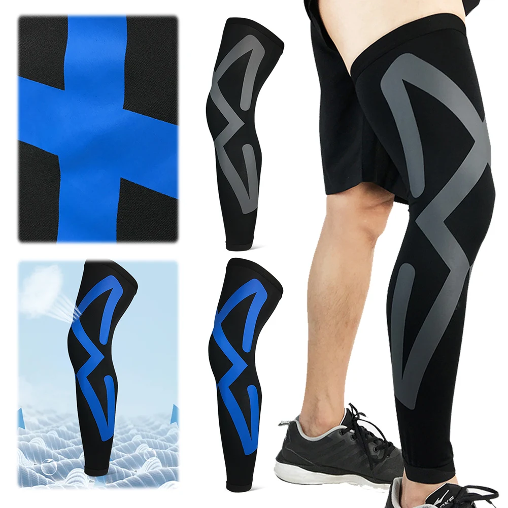 Plný noha komprese rukáv dlouhé koleno šle anti emf kolíček noha podpora ochránce koleno stabilizátor ortéza pro běžecký cyklistika