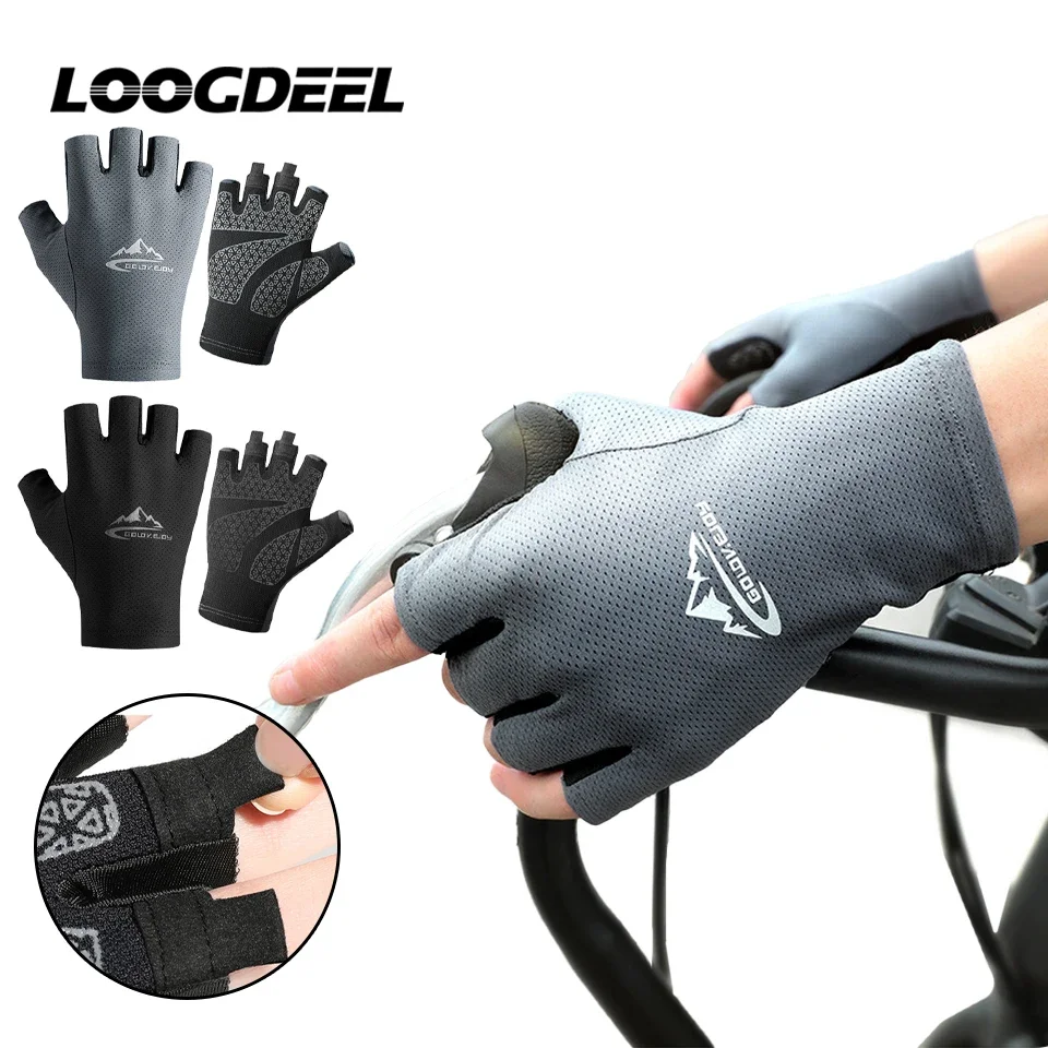 LOOGDEEL cyklistika rukavice led hedvábí slunce ochrana ridding rukavice ženy muži anti emf kolíček prodyšné polovina prst běžecký rybaření rukavice