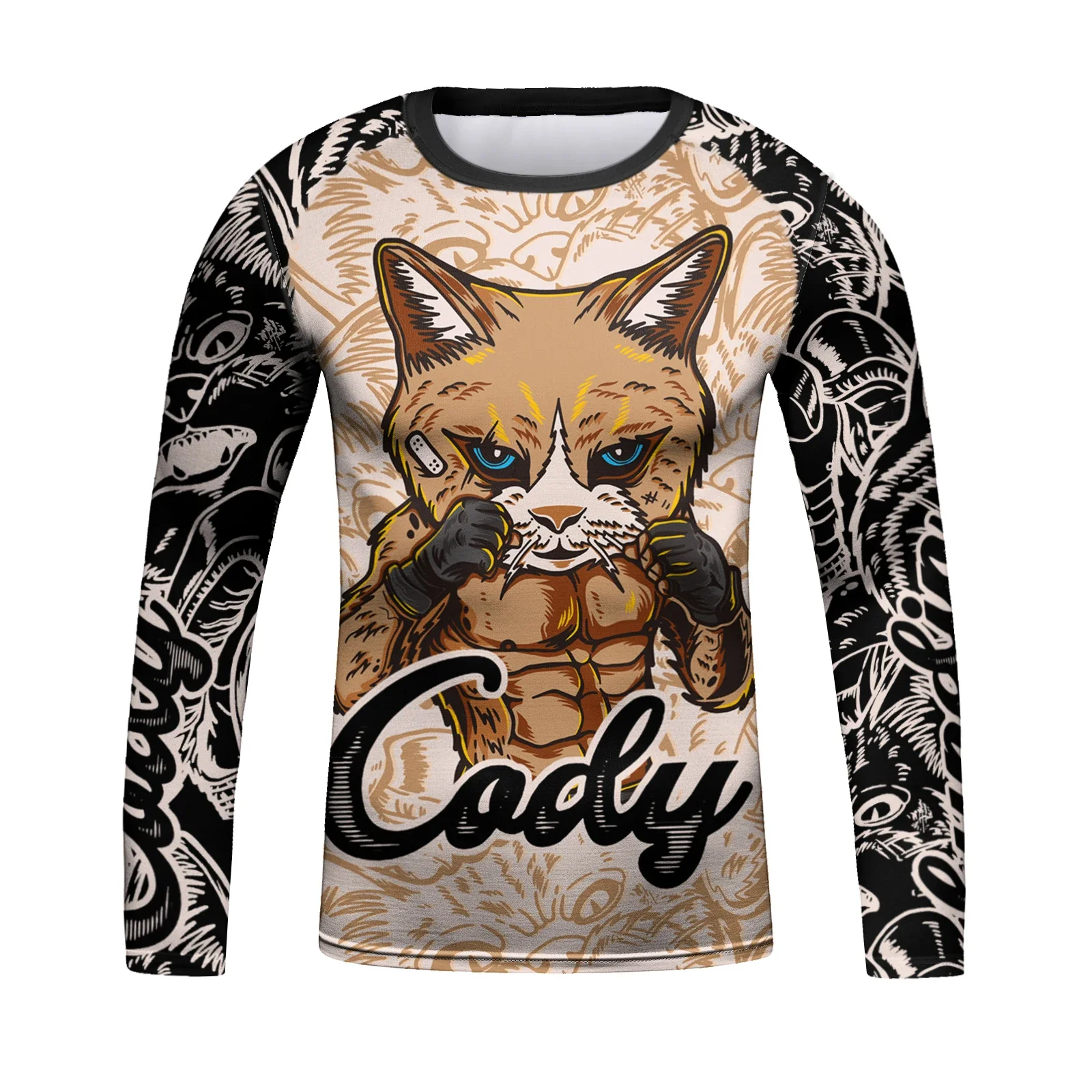 Smíšené marcus valerius martialis umění kocour 3D potištěné dlouhé rukáv tričko, pánské hroutit se období ležérní móda sportovní běžecký lehký prodyšné nejvyšší