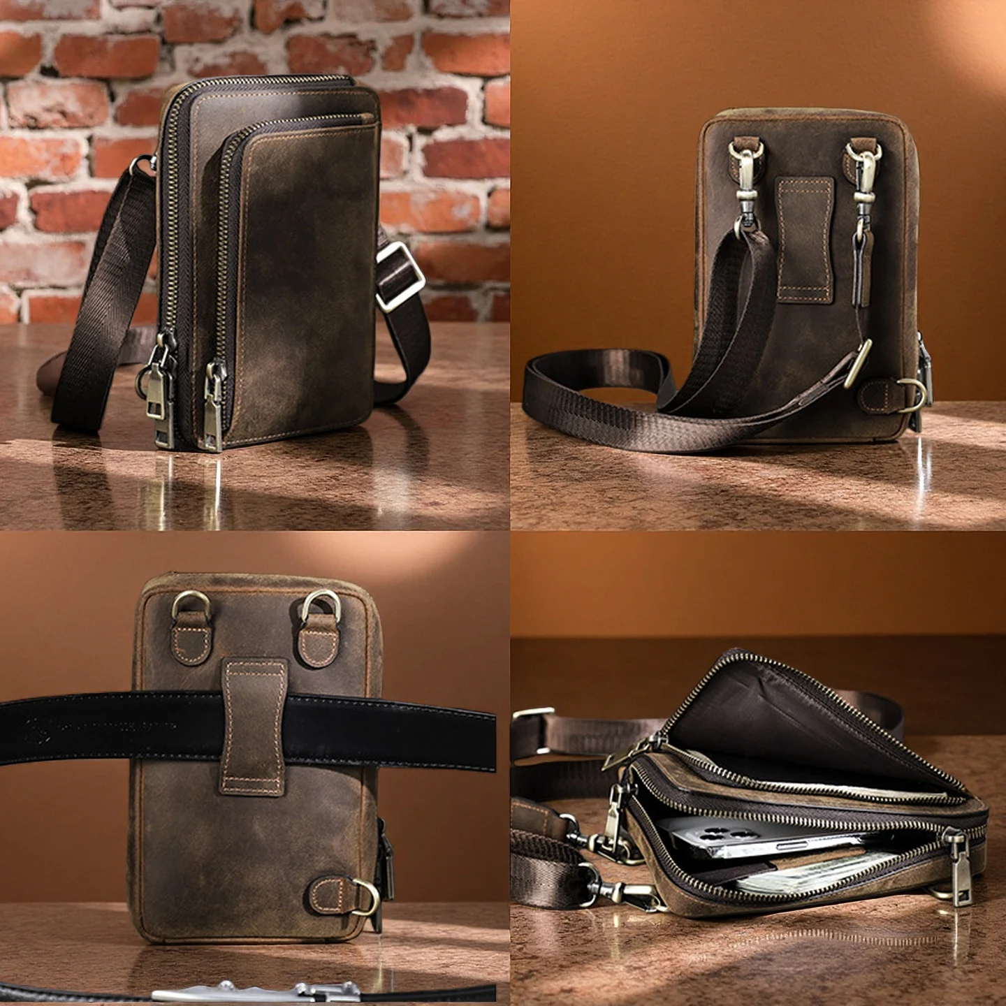 Muži malý telefon kapsa fanny pás kůže crossbody brašna ležérní pás pack fanny pás brašna pro pánský mini kurýr bedra pytle