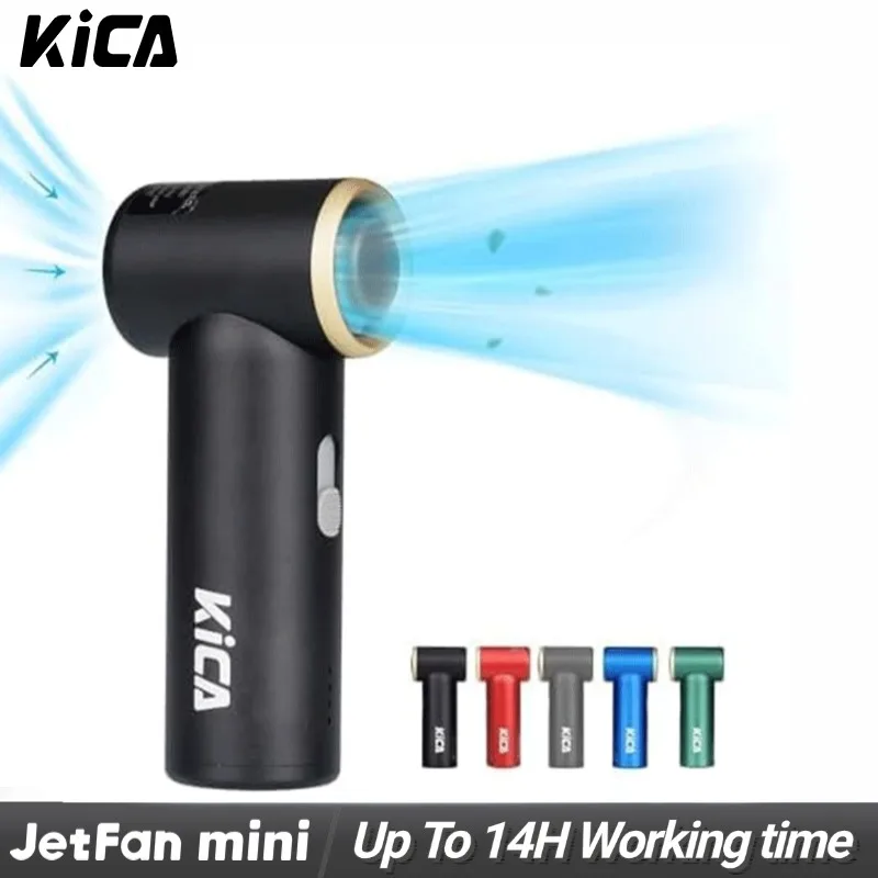 Kica jetfan mini osobní kapesní fanoušek 3000mah, kov turbo fanoušek, nastavitelný rychlost, outdoor/travel/camping, nahoře na 14H práce čas