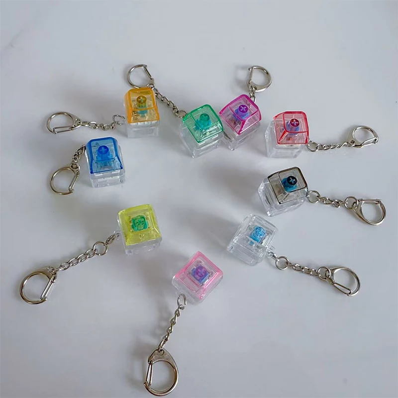 Přízvuk reliéf klávesnice keychain; 1key průhledný LED mechanická hračka pro DIY enthusiasts