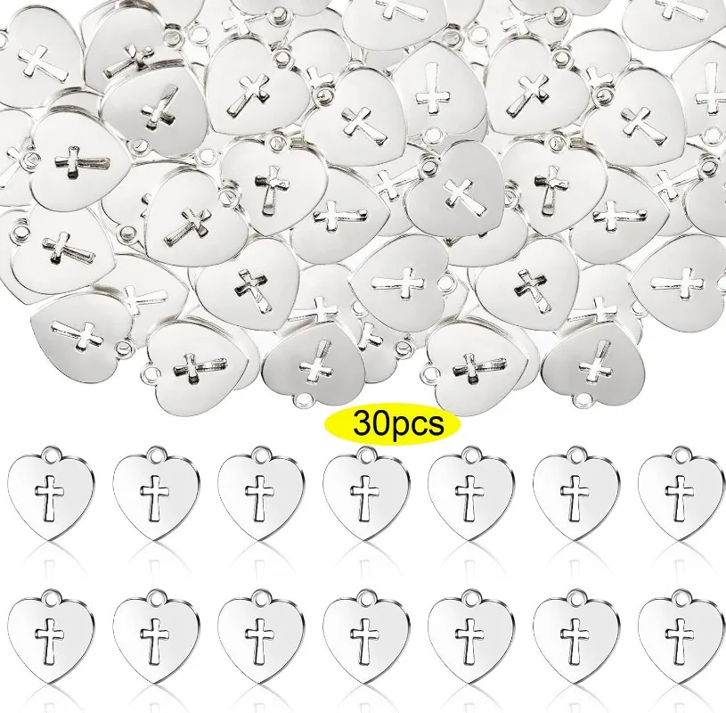 30 ks stříbro slitina srdce kříž přívěsky pro náboženské gatherings večírek DIY náramek řetízek náušnice klíčenka šperků vytváření