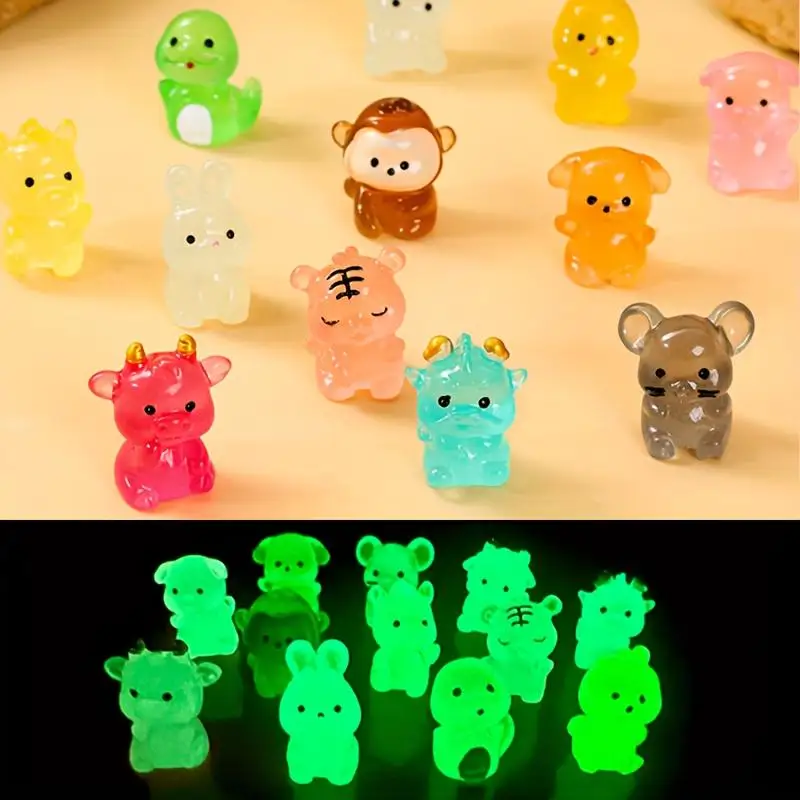 12 noctilucent zvěrokruh živočich plastik, svátek večírek dárky, a narozeniny dárky - roztomilá pryskyřice figurky s žhnoucí souris, koz