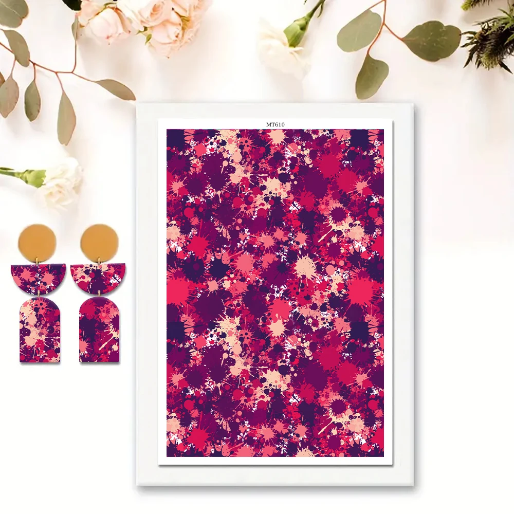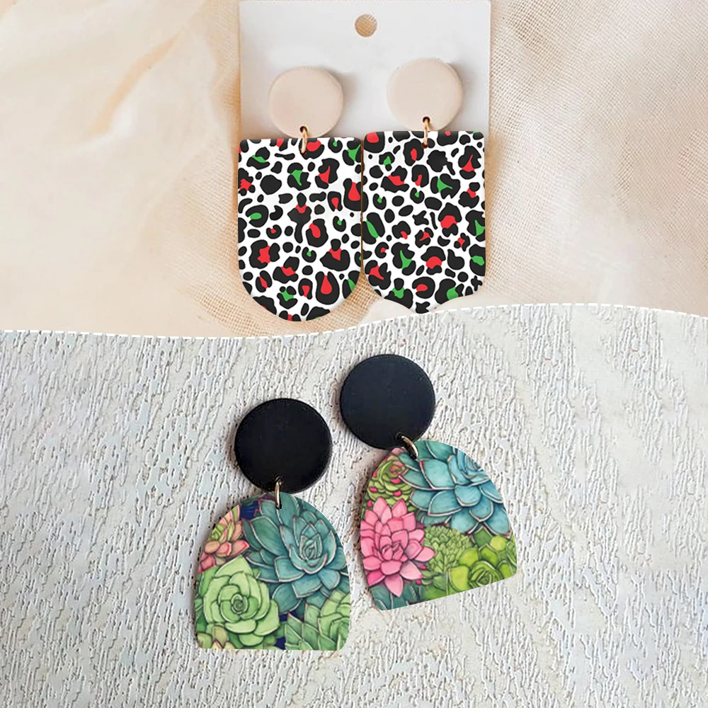 Červená & zelená levhart skvrnitý, sukulentní rostlina, modrá & bílá ibišek voda dovést papír pro polymerní hlína náušnice, drzý šperků vytváření