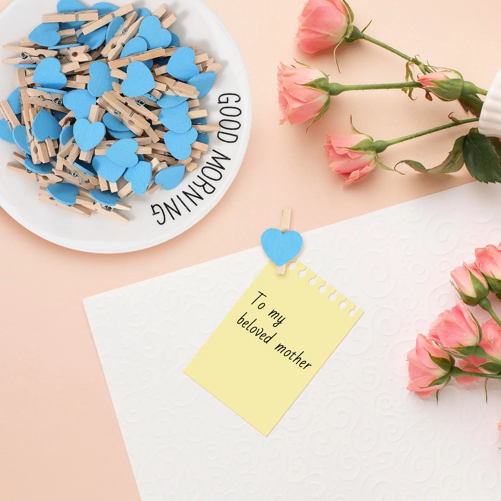 50ks malý dřevěný láska srdce fotka klipů pro DIY dekorace řemeslo mini malba závěsný klipů domácí úřad prodejna displej
