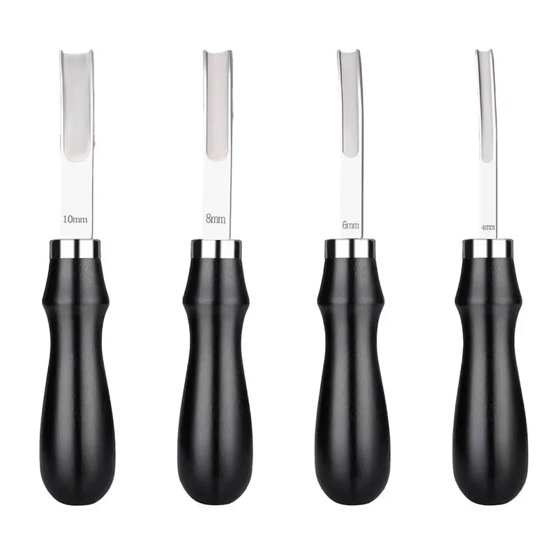 ~latest modelka 4 rozměr kůže ostří bevelers nářadí sada, široký huba skiving nůž s dřevěný madlo, pro kůže řídnoucí řezací C