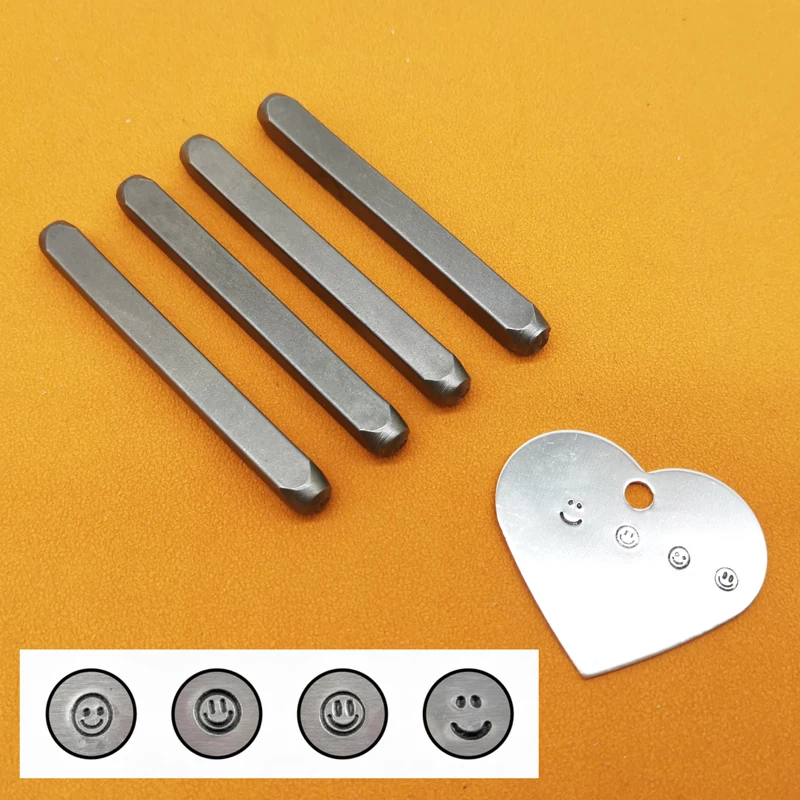 4ks 3mm úsměv obličej střih šperků cejchování udeřit sada kov cejchování sada kůže ocel pěchovadlo razicí impress logem nářadí