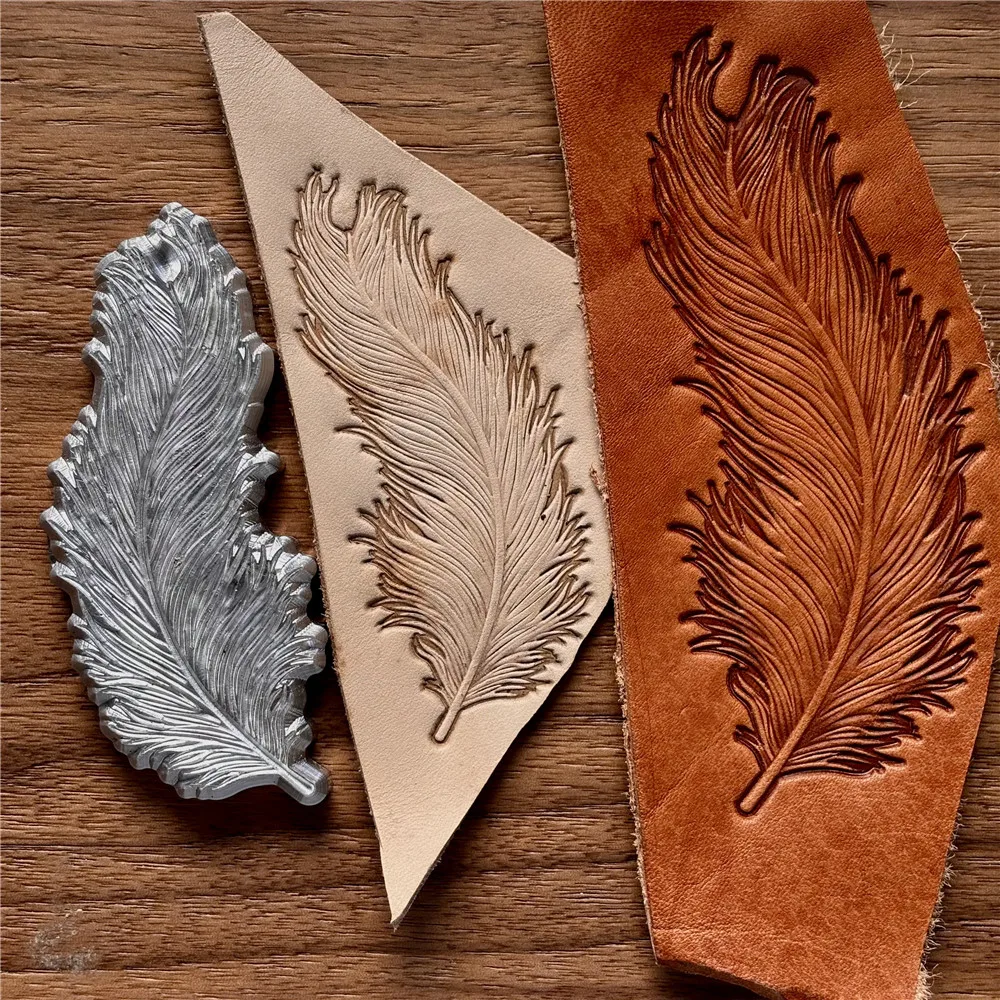 3D peří design kůže razicí pěchovadlo řezbářský cejchování forma chladný horké žár razítka řemeslo nástroje DIY tvarování