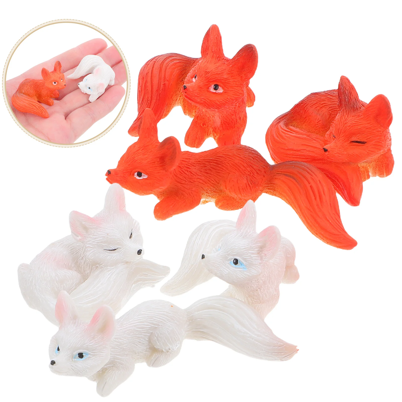 6ks mini lišák pryskyřice sad dekorace malý živočich plastik pro mikro krajina domácí plocha tabletop dekorační ornamenty
