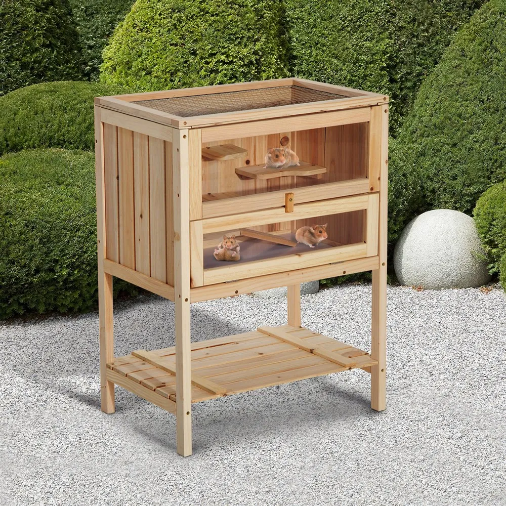 Pawhut dřevěný křeček klec zuřit casement strop plexisklo okno a dno polici 60x40x80 cm přírodní