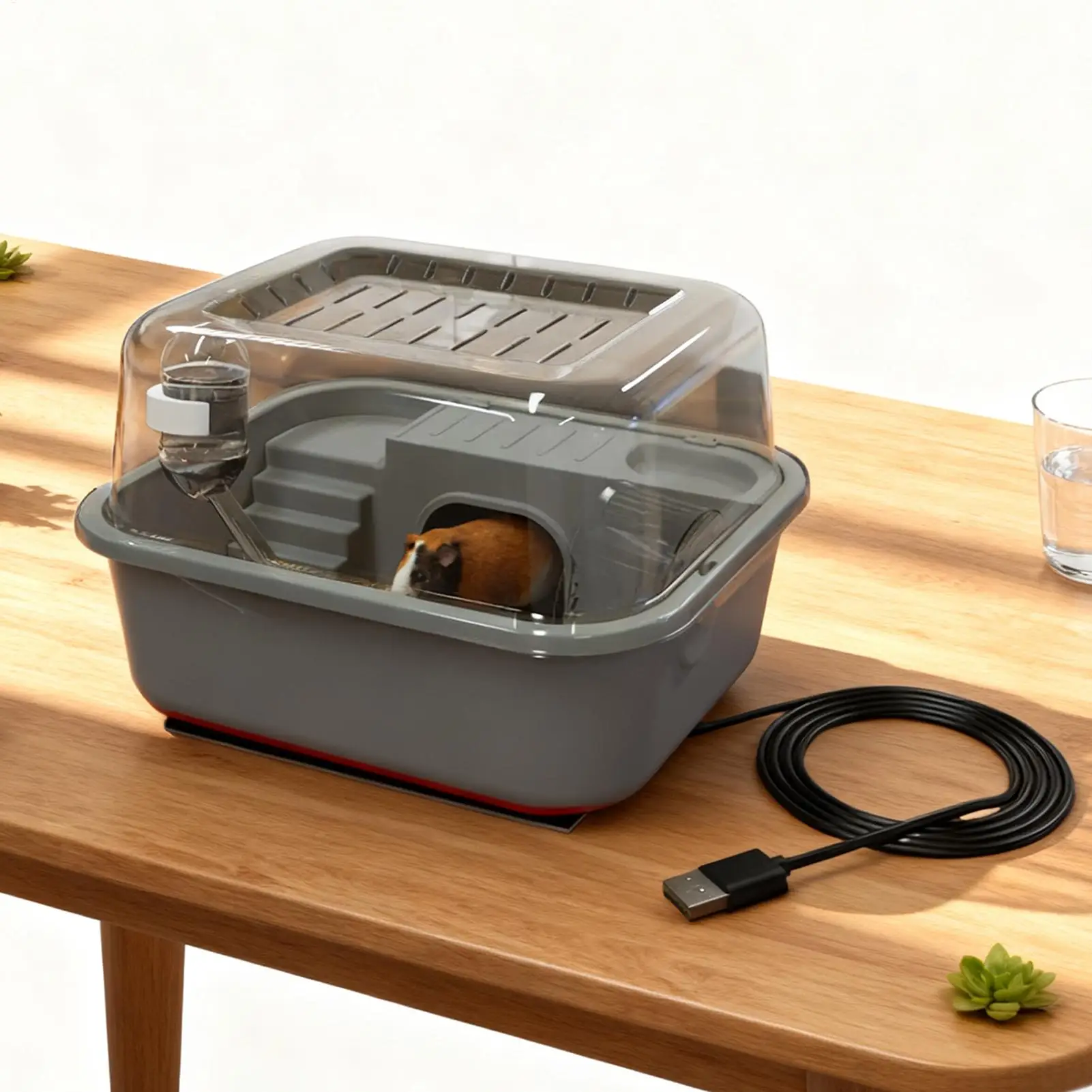 Klec pro křeček průhledná skromný běžecký kolo USB vyhřívaná křeček klec pro veverka gerbil calming hrací exercising balkon