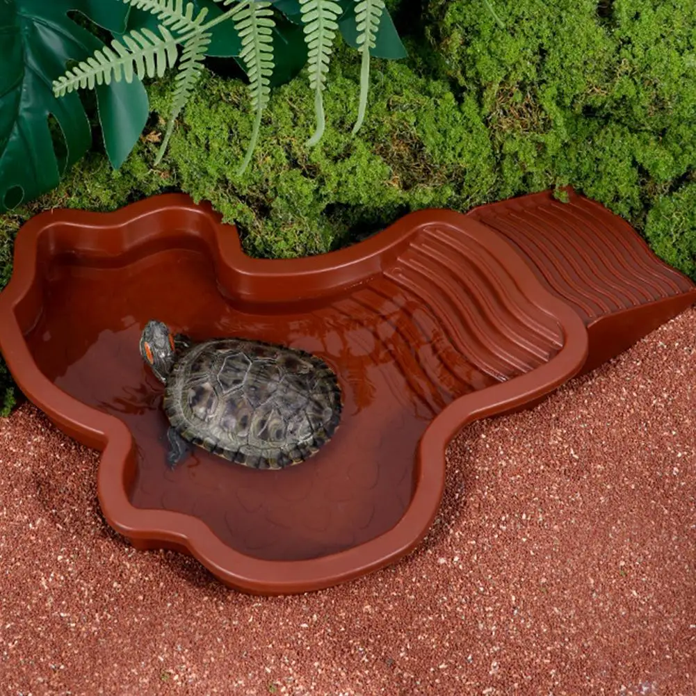 Mořská želva koupat bazén zdvořilý stanoviště s schody pro plazi resting a namáčení mořská želva krmení miska plazi koupací kaluž V2Y0