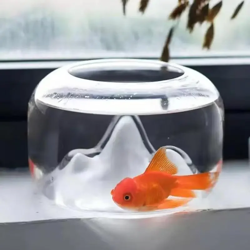Mini sněžit hora lampa ryba komora - zahuštěný sklo miniaturní akvárium, kreativní psací stůl dekorace pro žití pokoj, zvířátko ryba stanoviště wi