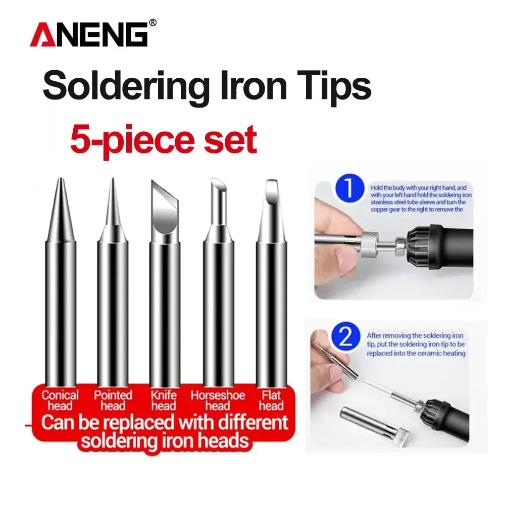 Aneng 5-piece sada z pájení žehlička tipy elektrický pájení žehlička příslušenství nahradit pájení elektrický pájení žehlička kování nástroje