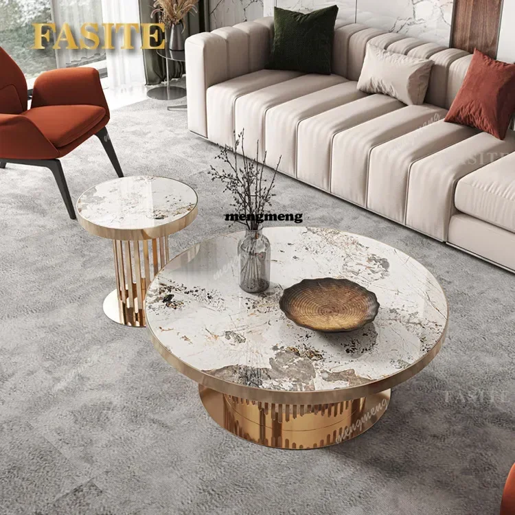 Lehký luxusní hornina slab kolo káva stůl moderní jednoduchý domácnost malý apartmá kreativní výtvarník nerez ocel