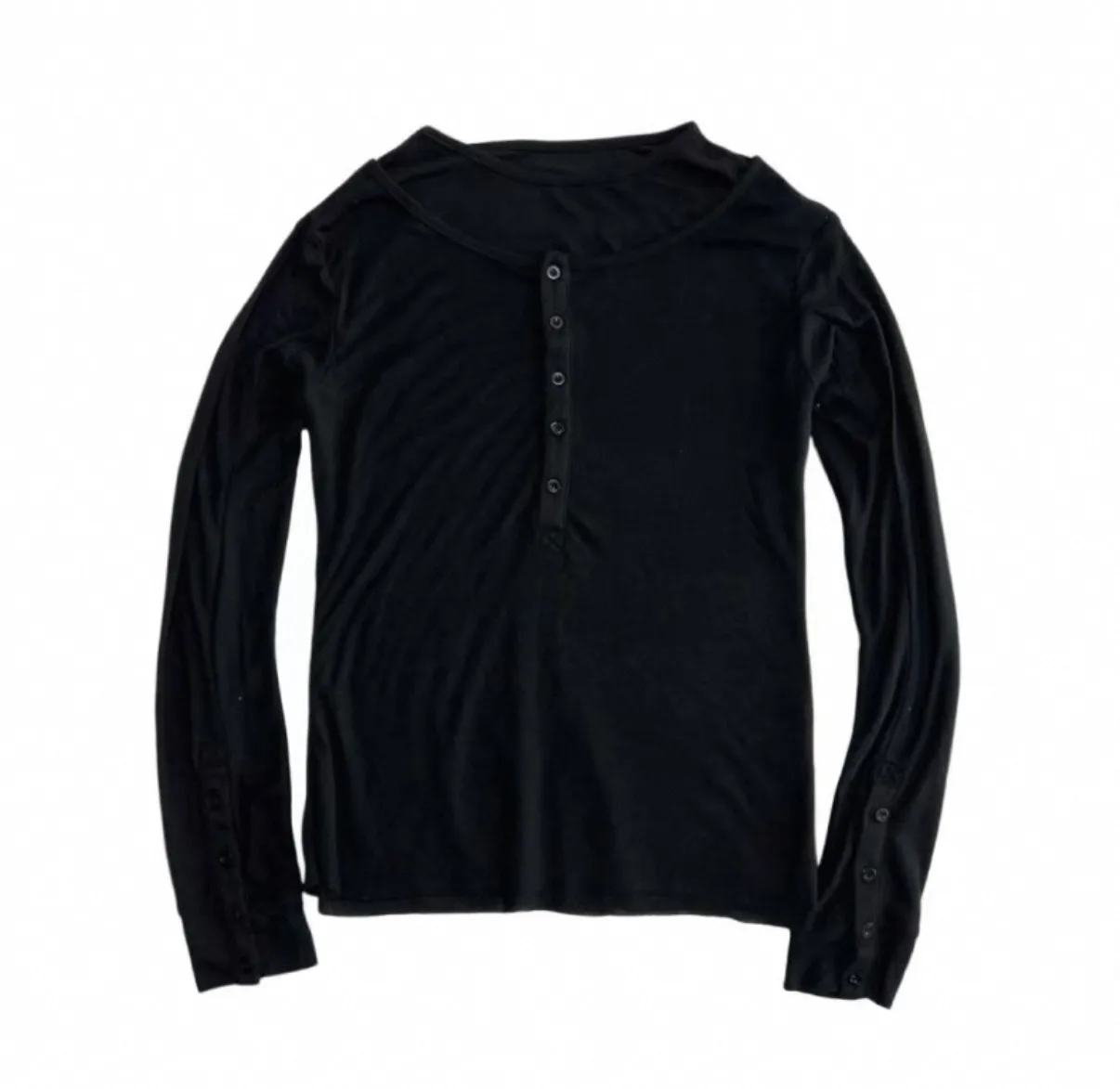 Důvěra studios 26SS dvojitý vrstva štíhlý odpovídat košile - černá bílá kontrast knoflík henley tričko