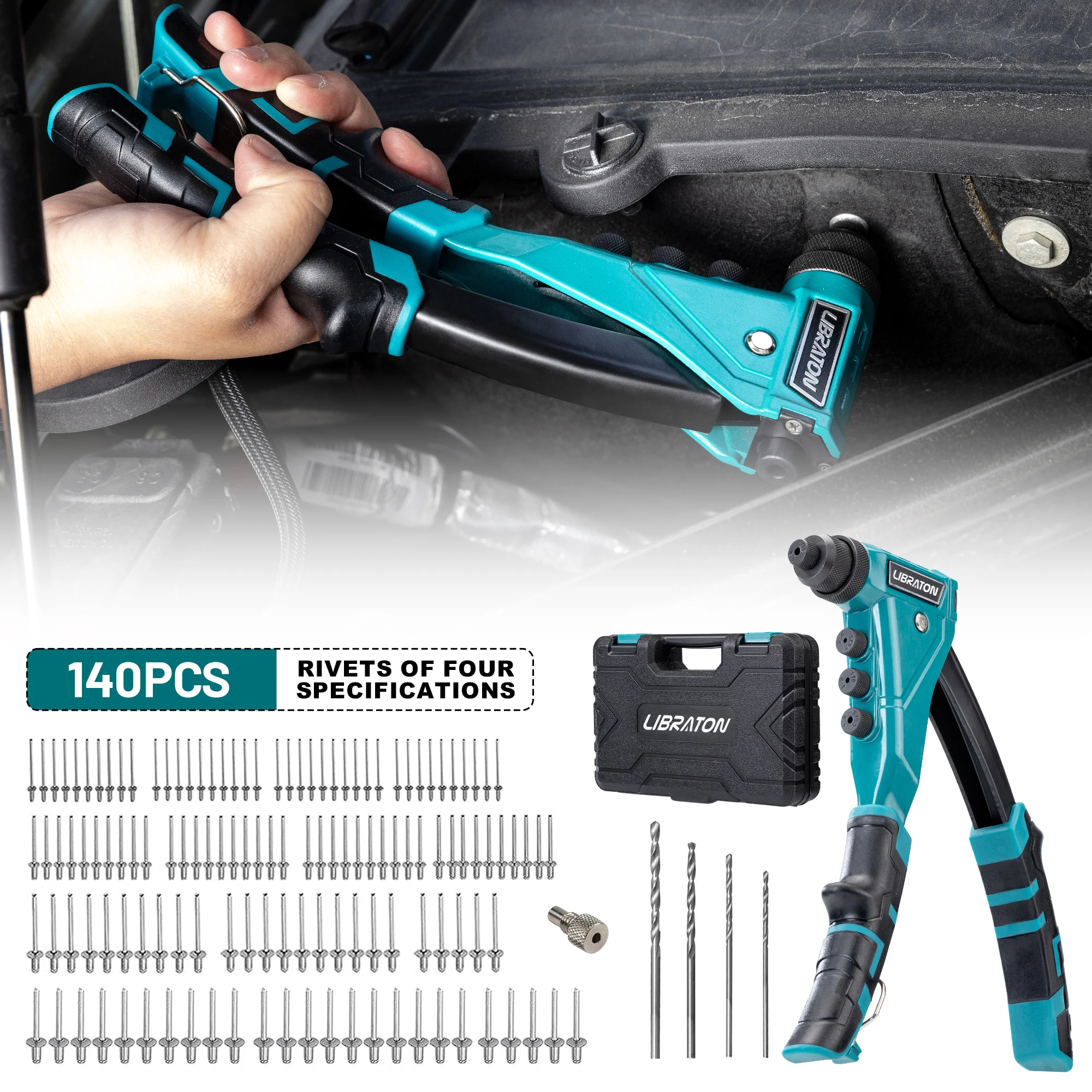Libraton 140pcs heavy-duty nýt pistole odborný pop nýt pistole sada manuál nýtovací nářadí pro kov, dřevo a plastový