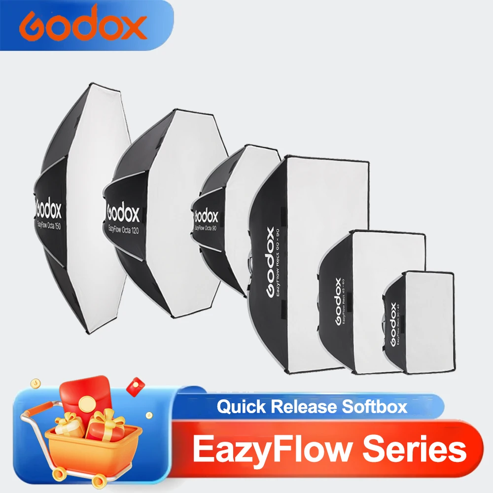 Godox eazyflow řada octagon60/90/120/150cm rectangle4040/4560/4090/6060/6090cm skládací rychlý setup softbox pro fotografie