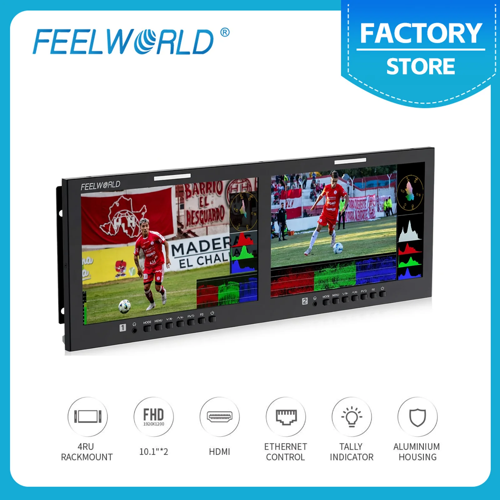 D101 PLUS-H dvojí 10.1"4RU rackmount monitor 4K HDMI CVBS 1920x1200ips