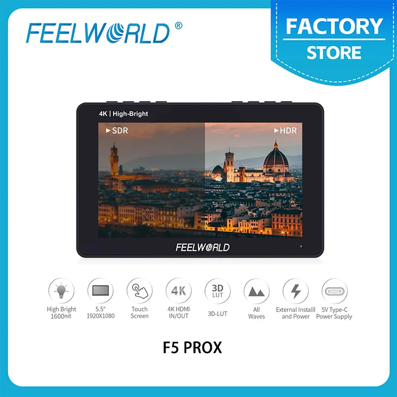 FEELWORLD LUT5E 5.5 palec vysoký nepopsaný 1600nit dotek obrazovka DSLR kamera bojiště monitor lehký senzor hdr 3DLUT pro youtube gimbal
