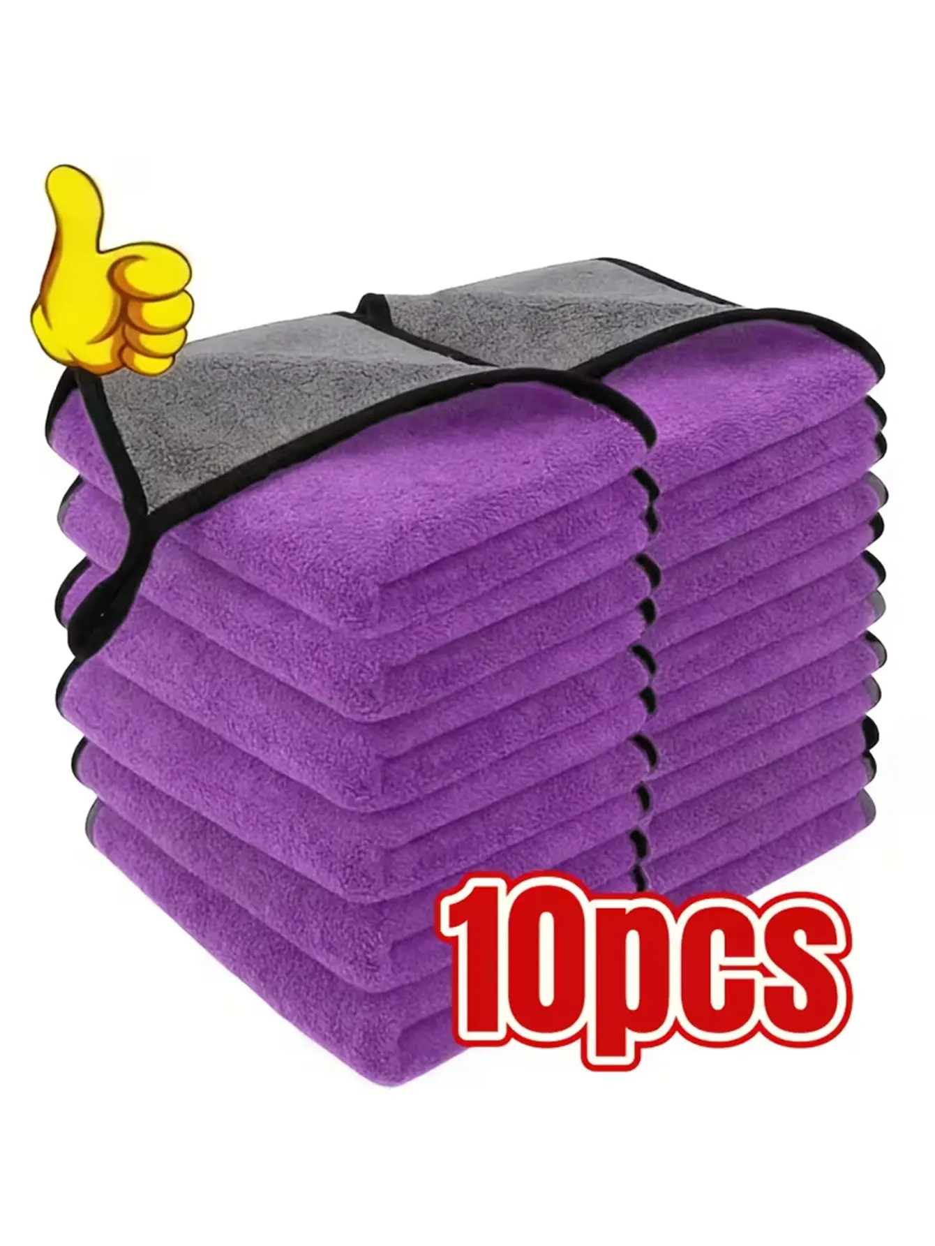 10-pack oboustranný korál samet mikrovlákno úklid látka | vysoce savé znovu použitelný ručník, two-tone design, čtverec vzhled, vhodný pro domácí, kuchyň, auto, koupelna, sklo úklid, mytí nádobí, a podstatný pro auto úklid.