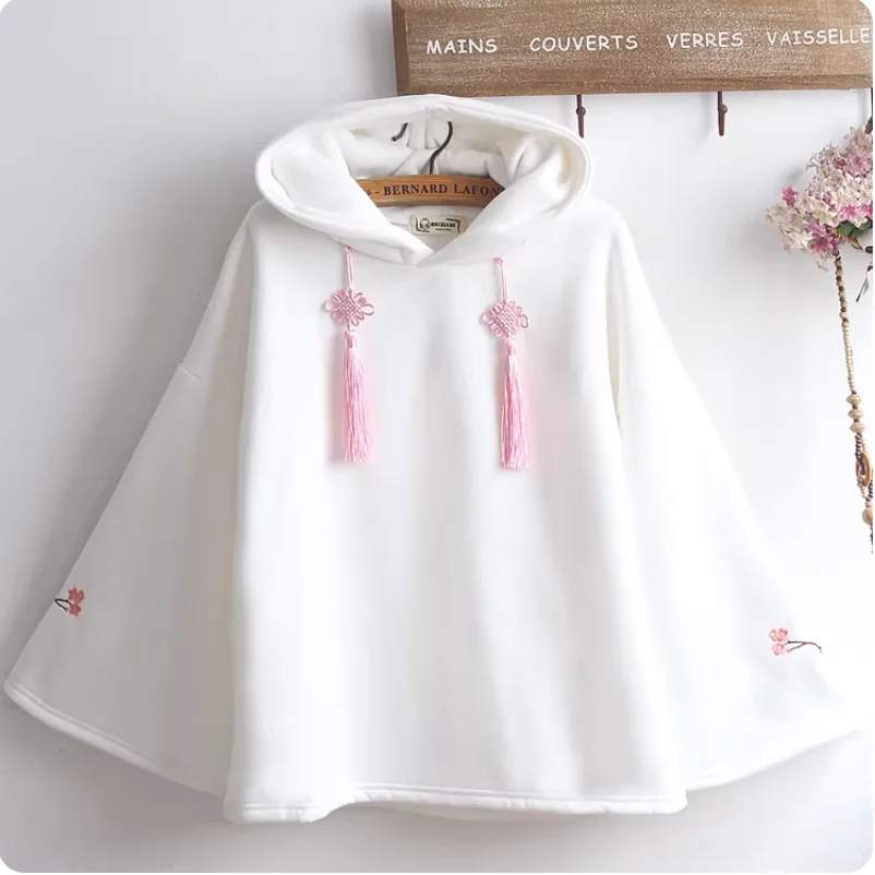 Roztomilá girl`s podzim a zima volné mikina s antikové styl lemovaný báseň výšivka, student styl, lemované, s kapucí svetr