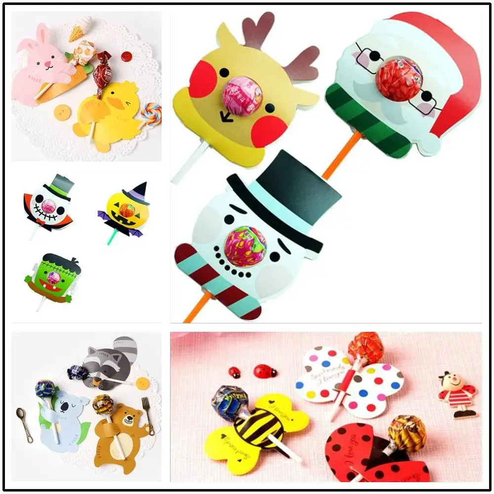 Vánoce mateřská škola dar narozeniny lollipop dekorace karta papír lollipops bonbóny papír karta králík kreslený dekorační karta