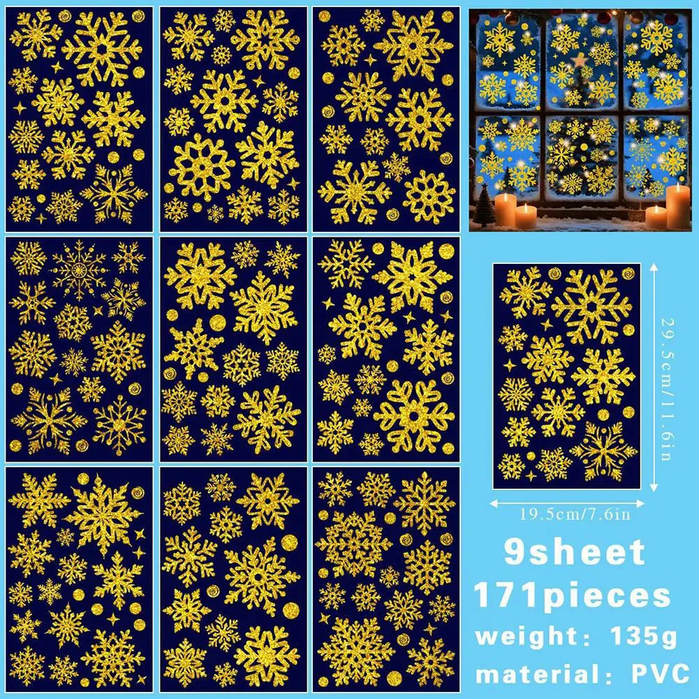9ks vánoce bledule okno clings elegantní zlato & stříbro nálepky pro svátek pvc vánoce bledule okno nálepky