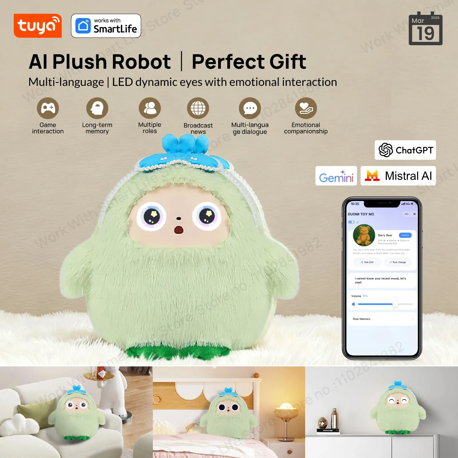 Yaya-ai plyš robot w/smart voice&led oči, interaktivní společnice hračka w/tuya app ovládání, USB dobíjecí e-pet - mincovna zelená