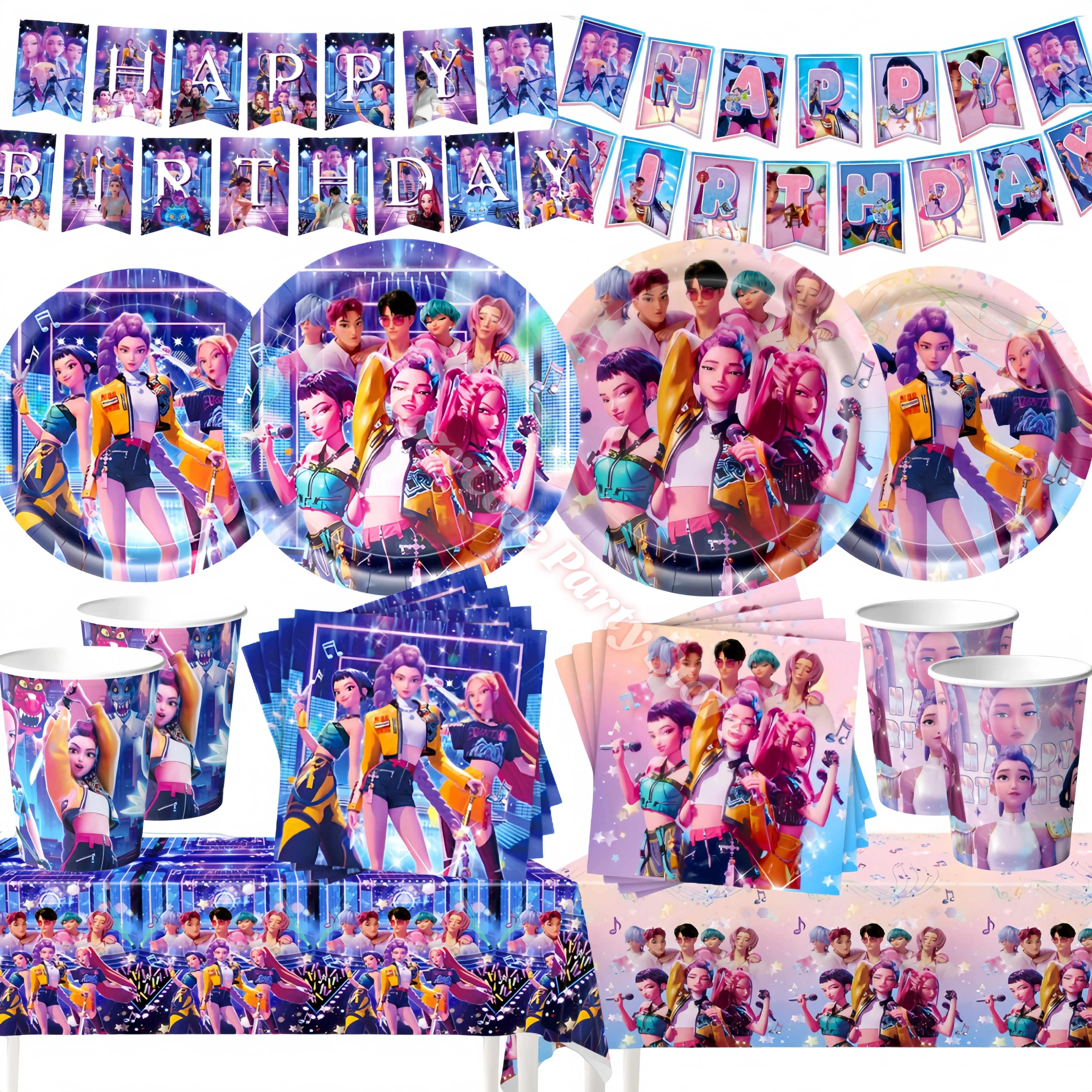 Nový de-mon hunters narozeniny dekorace sada nádobí balónků talíř pohár pro dívčí kpop anime večírek laskavosti zásoby fotka budky