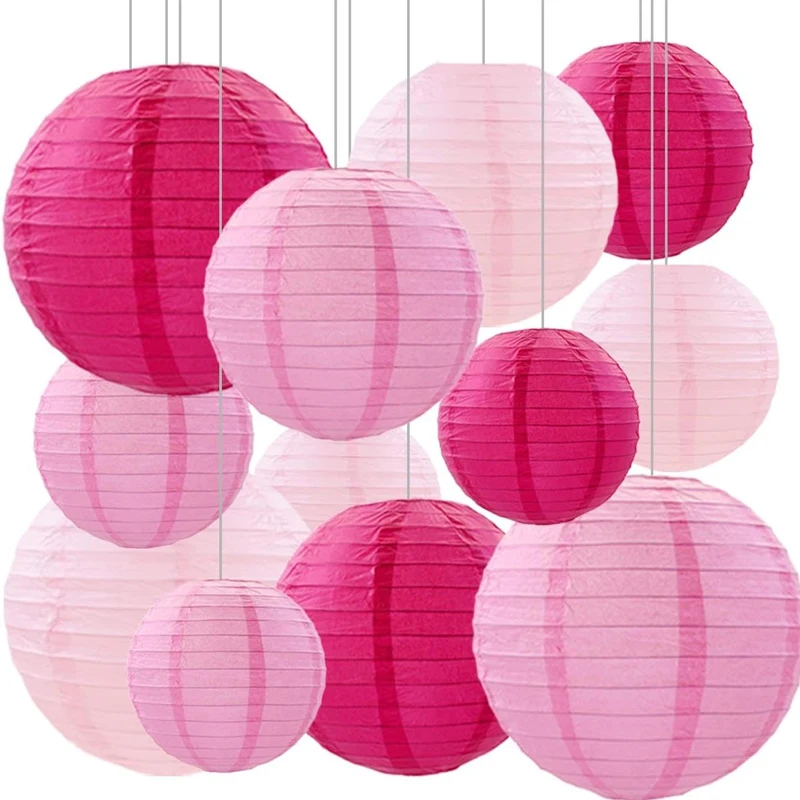 12ks papír lanterna večírek dekorace, maturitní děťátko mytí ceremonie závěsný papír lanterna růžová narozeniny dekorace kolo Čínské lanterna