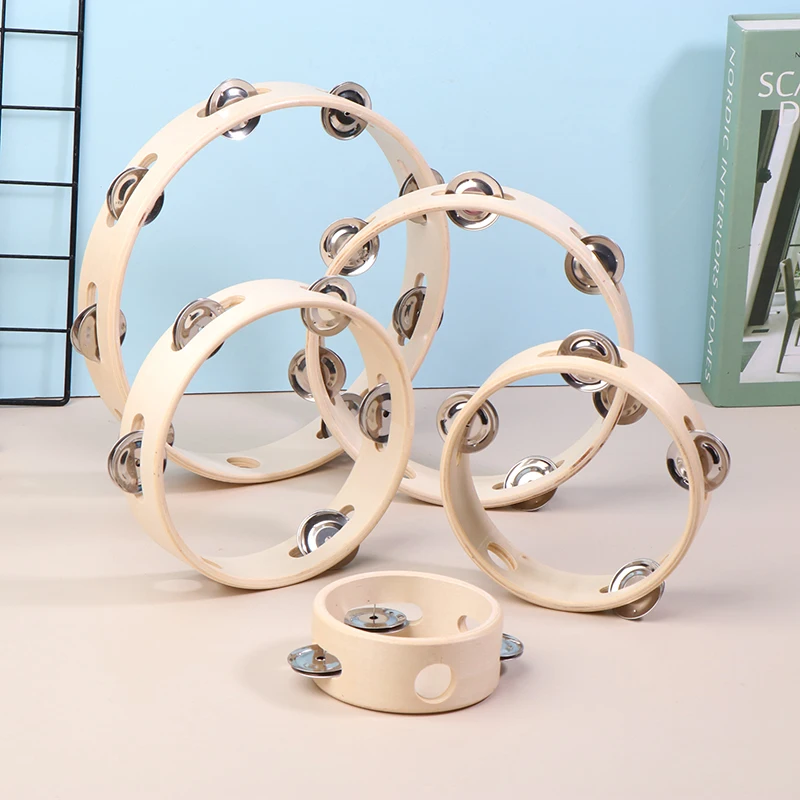 4/6/7/8/10inch ruka bicí hraček osvěta orff hudební měřici zařízení tambourine ruka zalomené zvon po jednom rvát se dřevěný tambourine kroužky