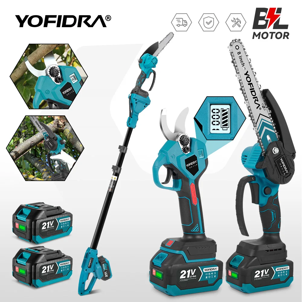 YOFIDRA bezuhlíkový elektrický 8 palec motorová pila 32MM nůžky telescoping hýl vysoký sad prořezávání nářadí pro makita 21v baterie špendlík