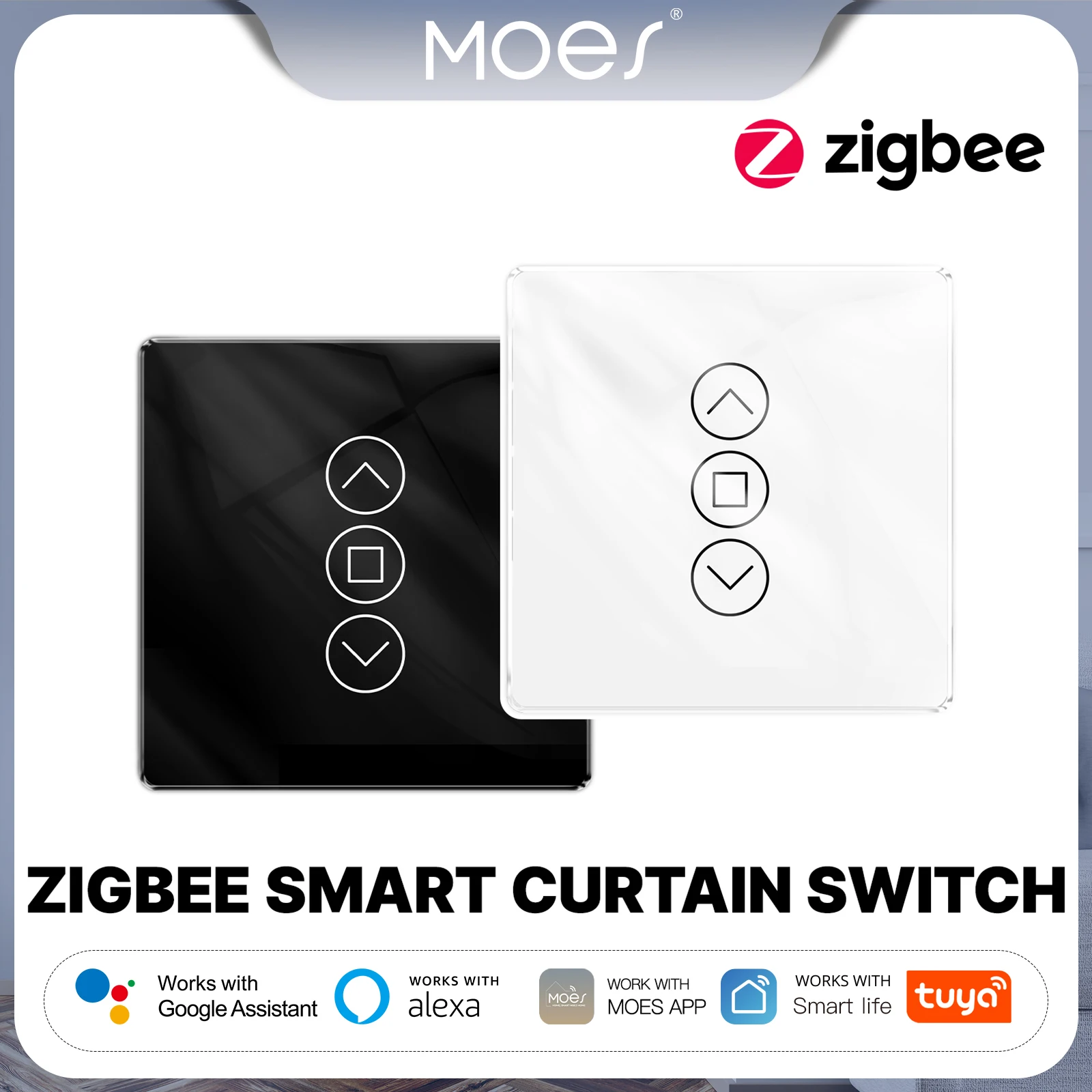 MOES tuya zigbee chytrý záclona spínač 2.5D oblouk sklo dotek panel app daleký ovládání pracovat s alexa google domácí hlas ovládání