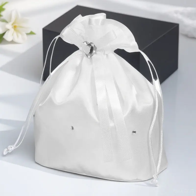 2ks svatební svatební devizy brašna srdce drahokamu satén stahovací nevěsta měšec elegantní bílá kabelka soumrak večírek příslušenství