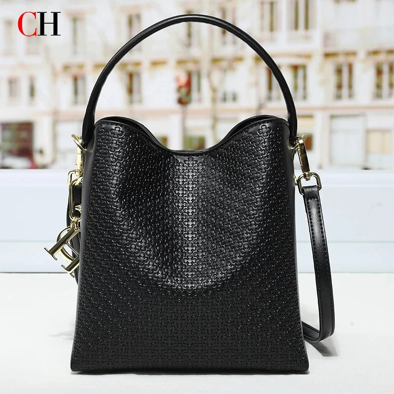 CH ražené kůže kbelík brašna velký schopnost kabelka s odnímatelné bedra řemen luxusní vláčet brašna pro ženy