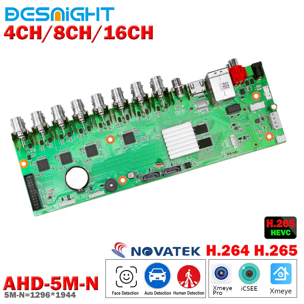 5barvy v 1 H.265 4CH/8CH/16CH 5M-N AHD DVR deska pro AHD 5MP 4mp 1080P 720P kamera onvif coxial ovládání P2P video rekordér XMEYE APP